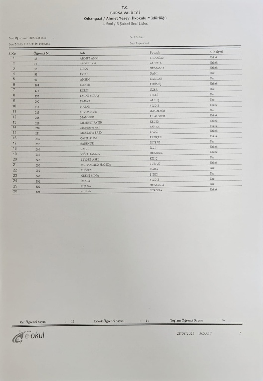 BURSA/ORHANGAZİ-Ahmet Yesevi İlkokulu